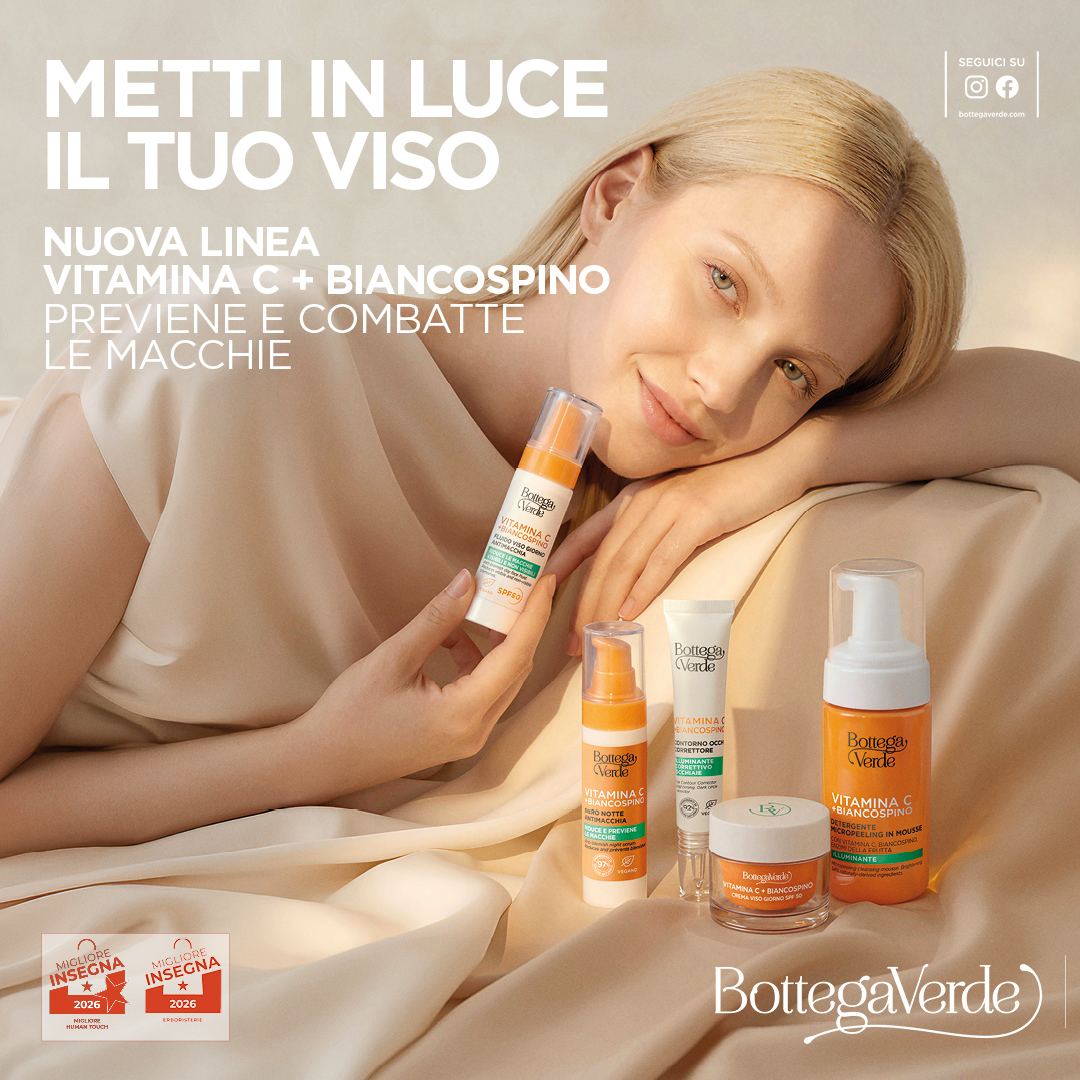 BOTTEGA VERDE Validità dal 7 al 26 aprile🍊 Nuova linea Bottega Verde Vitamina C & Biancospino Pelle subito più luminosa ✨✨ Uniforma l’incarnato✨ Riduce le macchie✨ Idrata e protegge ogni giorno La tua nuova glow routine è qui 💛👉 Scopri di più