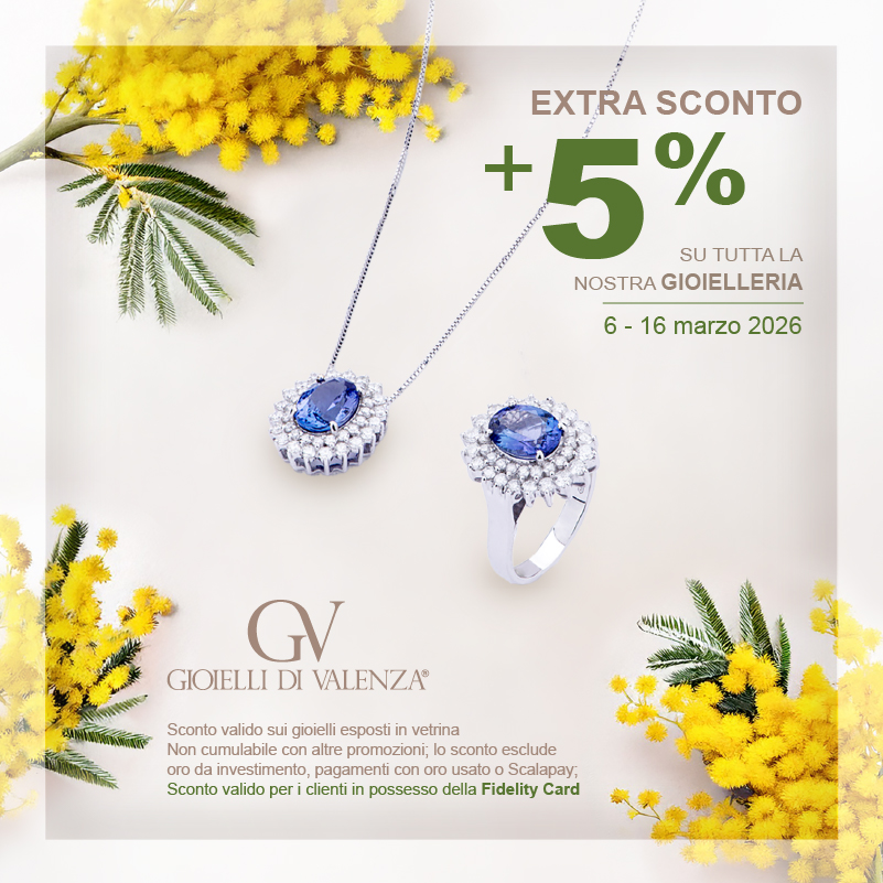Gioielli di Valenza Ogni donna è preziosa come un gioiello!Vieni a trovarci in negozio per conoscere la nostra super promo. Dal 6 al 16 marzo 2026.Seguici sui nostri social per rimanere sempre aggiornato.