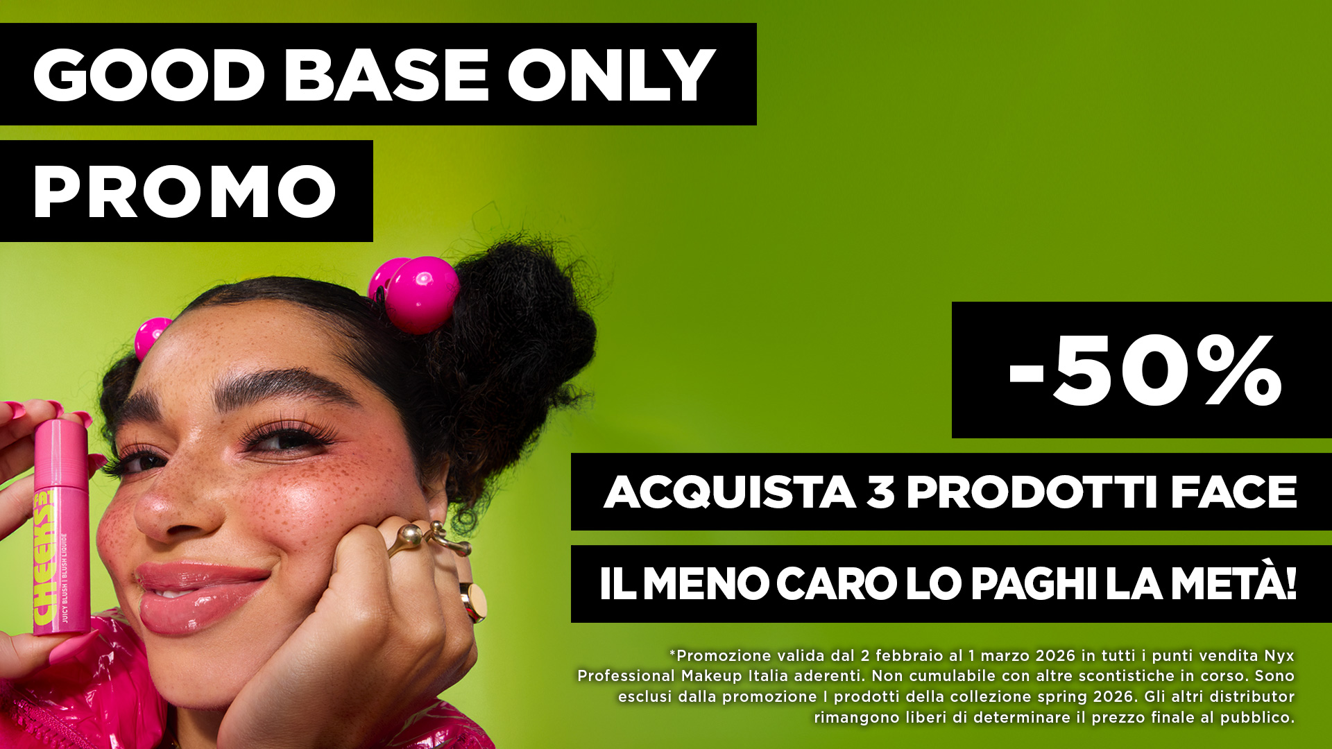 NYX – PROFESSIONAL MAKEUP GOOD BASE ONLY! -50% Acquista 3 prodotti FACE, il meno caro lo paghi la metà!Promo valida fino al 1 marzo 2026.