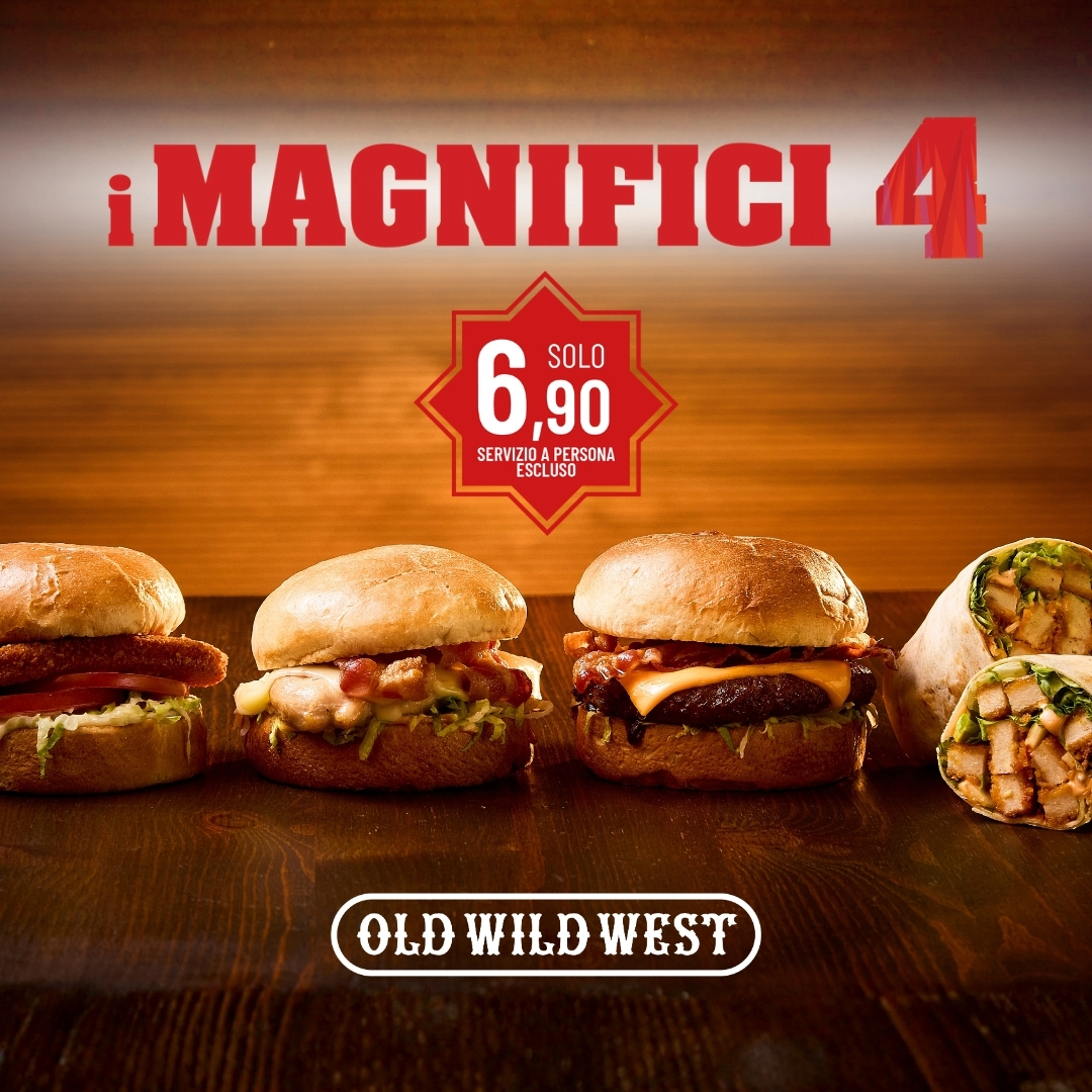 Old Wild West Sono tornati, più buoni che mai…Vieni a provare i nuovi Magnifici 4 solo da Old Wild West! Tutto il gusto che ami… a 6,90€!