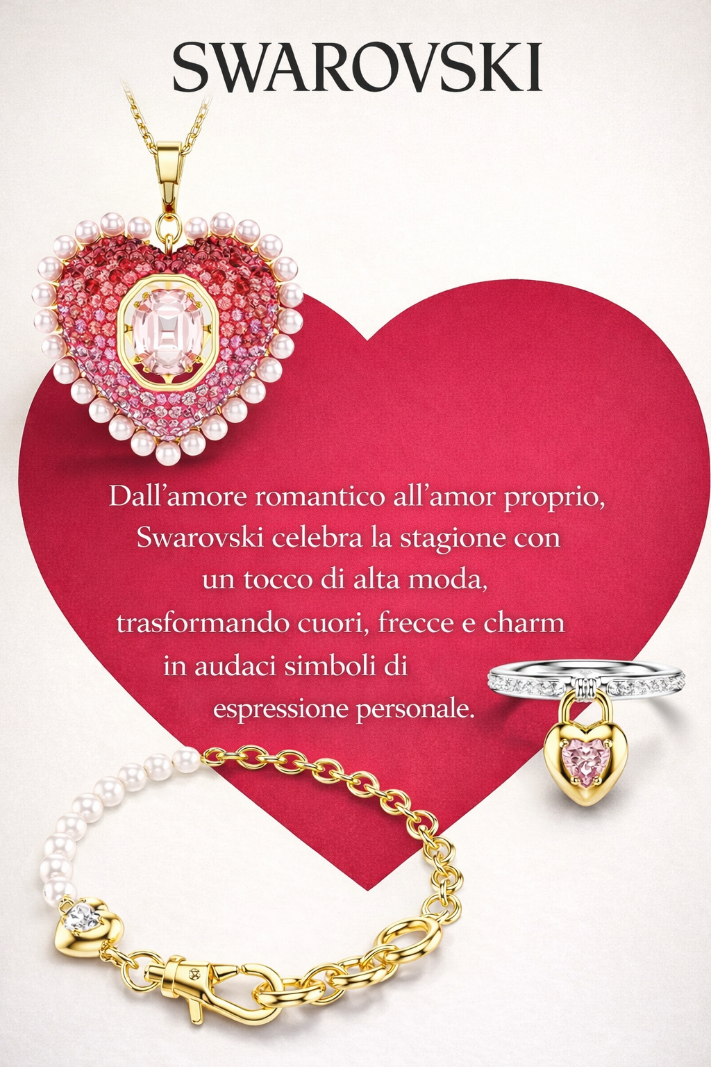 Swarovski Dall’amore romantico all’amor proprio, Swarovski celebra la stagione con un tocco di alta moda, trasformando cuori, frecce e charm in audaci simboli di espressione personale.