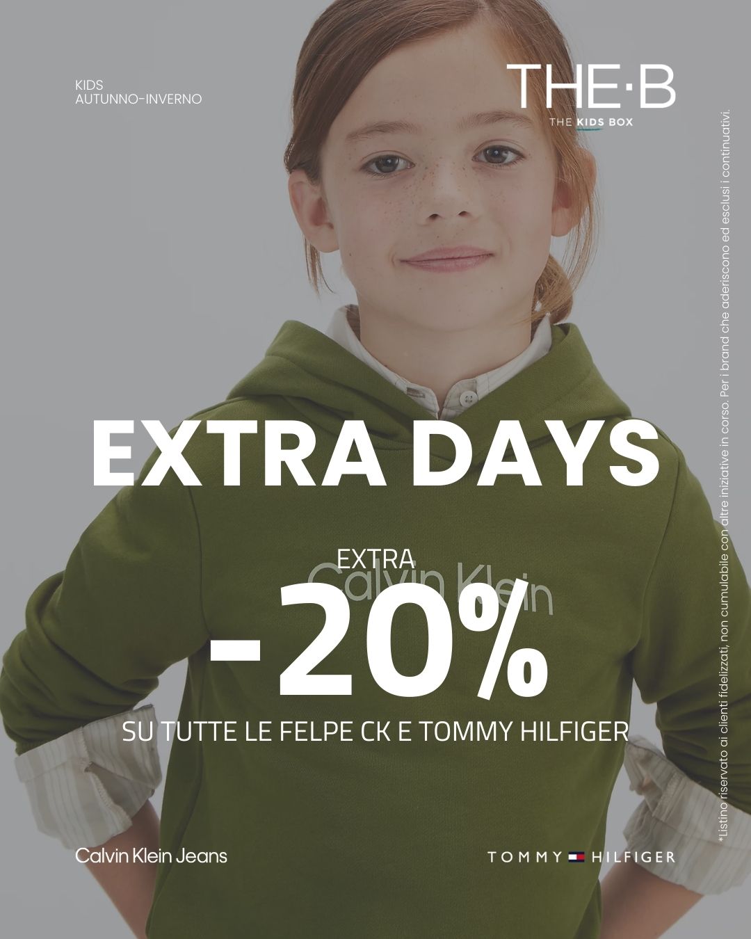 THE B Kids EXTRA DAYS!Extra 20% sulle Felpe F/W Tommy Hilfiger e CK Jeans, già al -30%.Solo per te. Valido fino all’8/12.Ti aspettiamo!