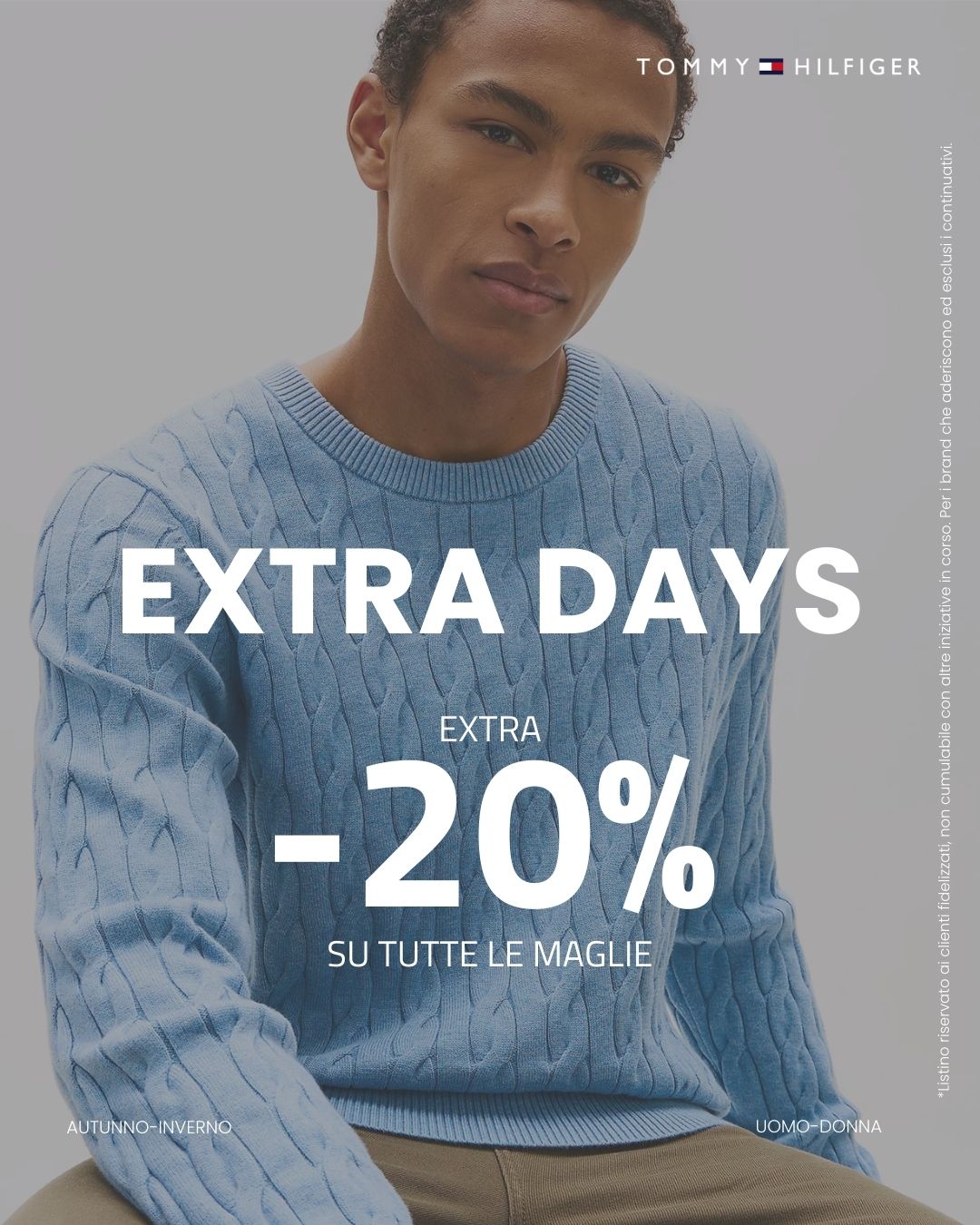 Tommy Hilfiger EXTRA DAYS!Extra 20% sulle Felpe F/W Tommy Hilfiger e CK Jeans, già al -30%.Solo per te. Valido fino all’8/12.Ti aspettiamo!