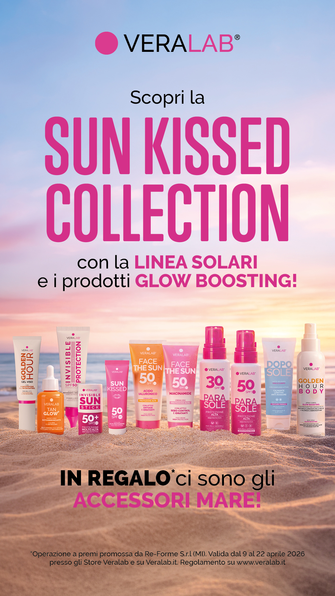 Veralab ☀️ Scopri la Sun Kissed Collection! Dal 9 al 22 aprile, acquistando i prodotti Veralab della linea Solari e Glow Boosting ricevi in regalo gli accessori mare! *Valido presso gli Store Veralab e su Veralab.it